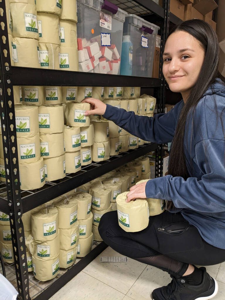 We’re also committed to providing personal care and hygiene items. A person can go to the local store and easily spend up to $50 on these products. Our personal care items include shampoo, deodorant, toothpaste and feminine hygiene products. And we have expanded to be able to give out incontinence products because the demographic for our pantry has changed. The pantry has a lot more seniors that we are currently serving. To be able to provide them with incontinence products is fantastic. We are extending that respect and dignity that all people deserve. Every time someone visits, they get a bag of these items along with their groceries.