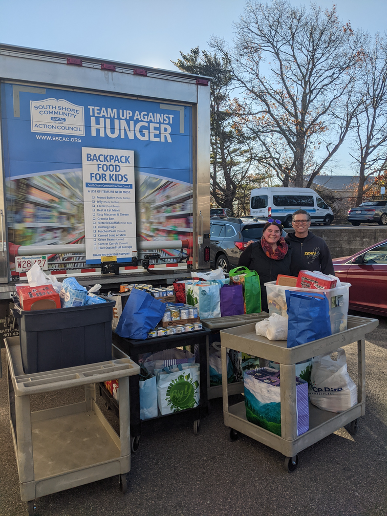 The South Shore Community Action Council partnered with the Plymouth Massachusetts Public Schools to assemble a team of volunteers that managed a donated box truck for our food donations to continue. We parked that box truck outside of our center, and our staff would wheel food in and out. The truck was staffed with volunteers who would park their cars in front of it. Then anytime somebody came to donate, they would run out, hoist up the back of the truck, and run back to their car. People could drop off the food and then drive away, and the volunteer would run back out and shut the door. Our dedicated volunteers would return to their car and wait for the next person to arrive.